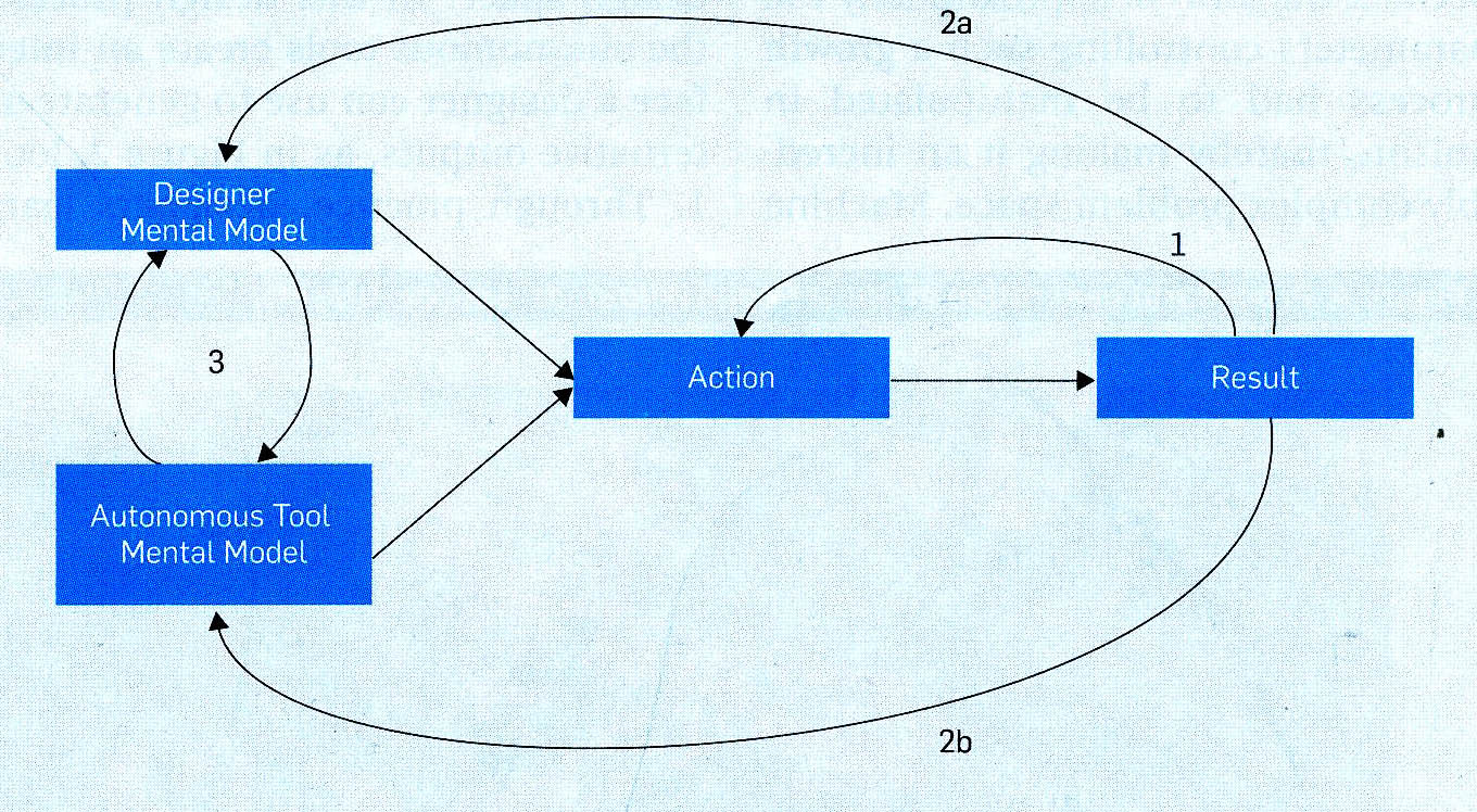 Si l’outil a une certaine autonomie, il dispose lui aussi d’un « modèle mental » qui évolue au fil de l’action. Et il y a interaction entre ce modèle et celui du designer.