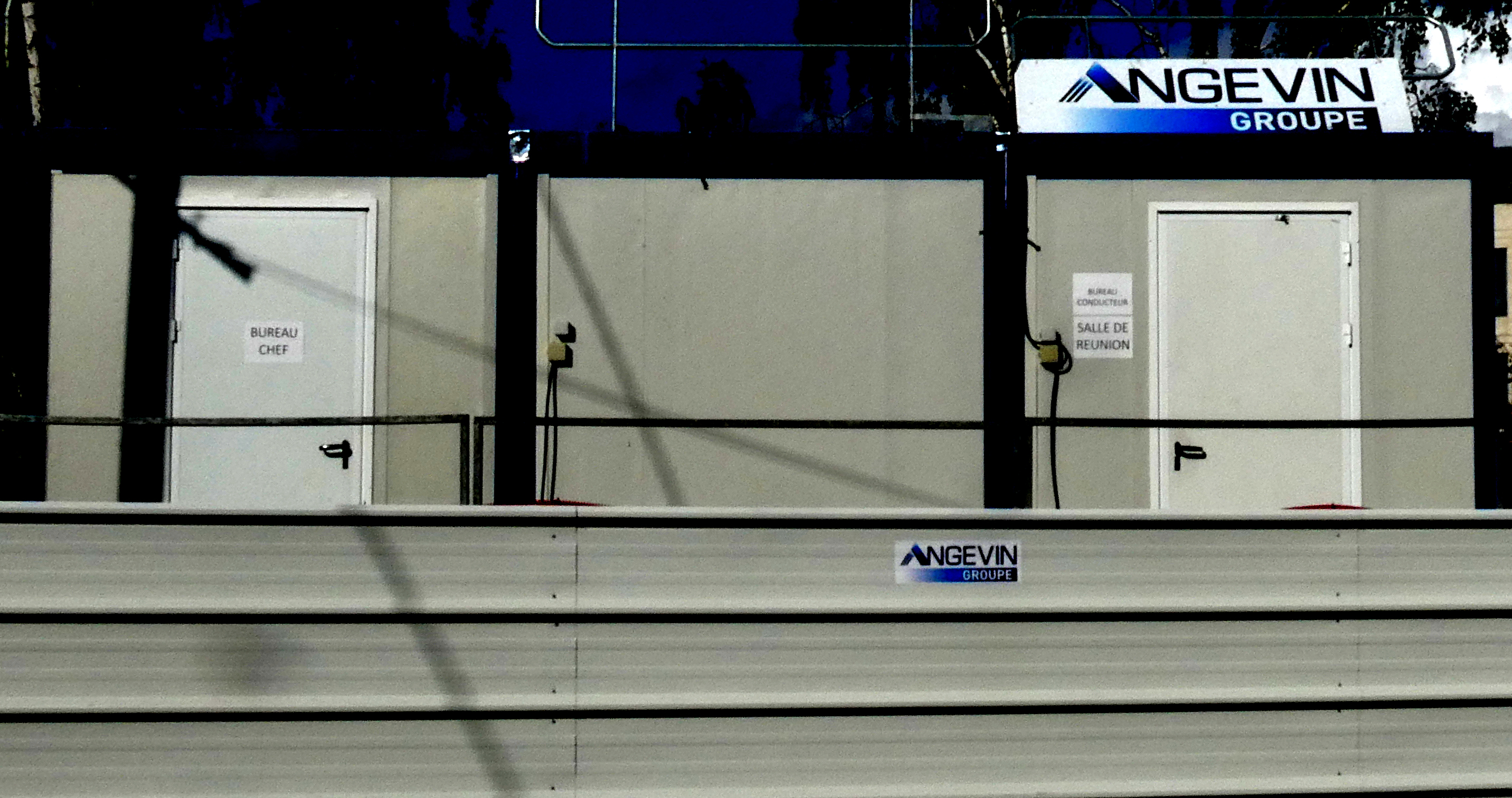 Sur ce chantier immobilier à Maisons-Laffitte, la gouvernance s’affiche avec simplicité : à gauche le bureau du chef, à droite le bureau conducteur et la salle de réunion.