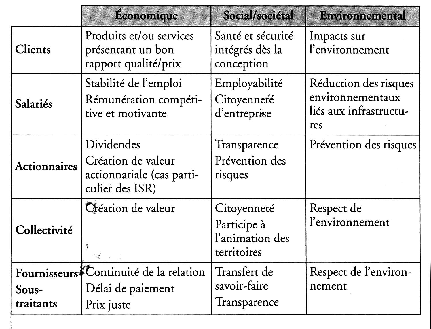 relations avec les « parties prenantes » (actionnaires,